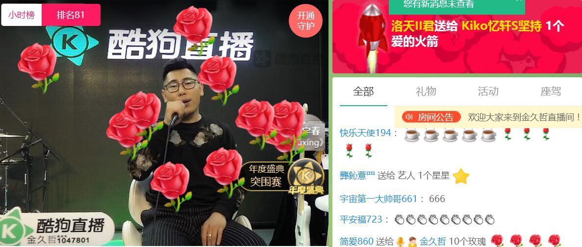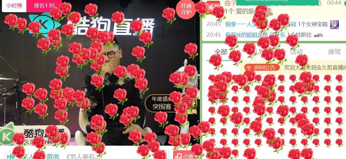 看到这么多的东北老乡捧场,金久哲自然也是卯足了干劲儿来唱歌。他的开场曲目便是近期大受欢迎的新歌《男人要有男人样》,一首豪情歌曲唱出了男人该有的凌云壮志。而在他早年的热曲《小妹听我说》里,金久哲又用磁性的嗓音以及写实的歌词,表达出了一个男人拒绝诱惑、心中有家的高尚情怀。金久哲随后演唱的网络红曲《敬天敬地敬兄弟》,更是将东北汉子的豪爽义气给展现的淋漓尽致。在金久哲卖力的演唱之后,直播间里的粉丝们也是热情洋溢,各种礼物刷屏不断,玫瑰、百合更瞬间淹没了整个直播间。