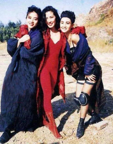 张曼玉年轻的时候随便一穿就很时尚,在电影中,她衬衣搭配宽松牛仔裤,外搭一件深色毛衣,妥妥的文艺休闲范儿,现在追求复古风的很多姑娘还在这样穿。与梅艳芳杨紫琼合影,还时髦的戴上发带,吊带+短裤,外搭长风衣,脚踩高靴,性感帅气,感觉她们身上的每一件单品都好想要!