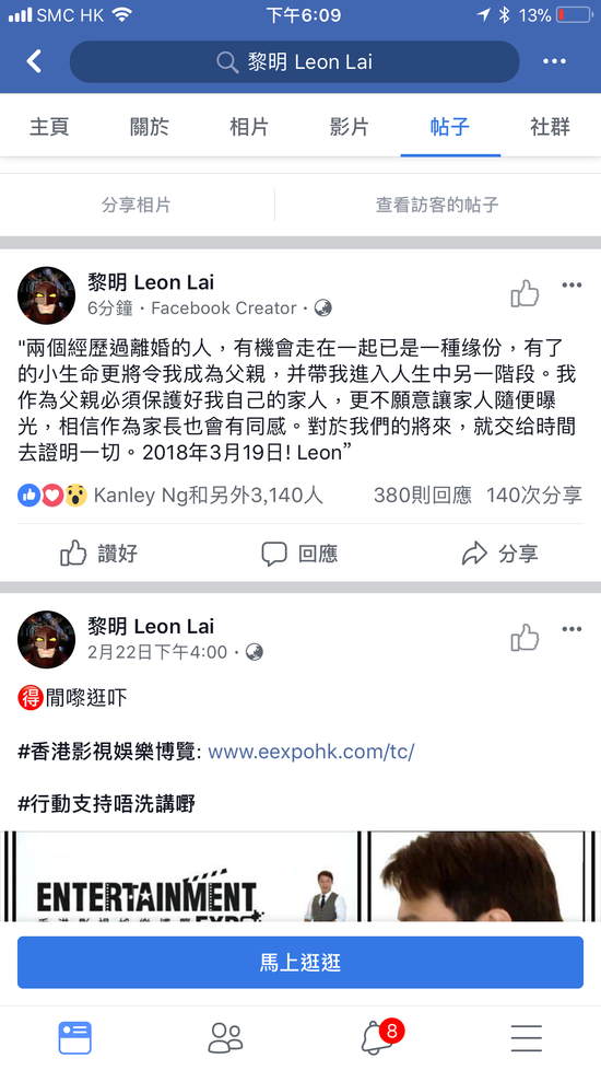 3月19日,黎明在个人社交网站承认成为父亲:“两个经历过离婚的人,有机会走在一起已是一种缘份,有了的小生命更将令我成为父亲,并带我进入人生中另一阶段。我作为父亲必须保护好我自己的家人,更不愿意让家人随便曝光,相信作为家长也会有同感。对于我们的将来,就交给时间去证明一切。2018年3月19日! Leon”