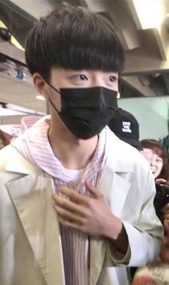 陈立农抵达机场,黑口罩藏不住萌笑,有粉丝献花、给礼物,他低调婉拒,大批粉丝包围,他沿途左右看粉丝一直说:“小心。”他要走到门口时,还贴心说:“小心门哦。”十分贴心。