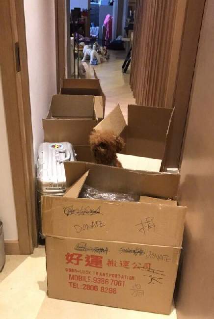 满地的纸箱,可爱的狗狗也是到处“安窝”了!