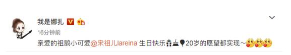 5月23日,古力娜扎在微博发文为宋祖儿庆生,她写道:“亲爱的祖鹅小可爱,生日快乐!20岁的愿望都实现!”据悉,古力娜扎和宋祖儿因共同参加节目结识,两人感情很好,微博上也时有互动。