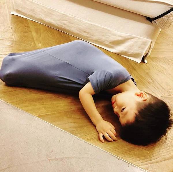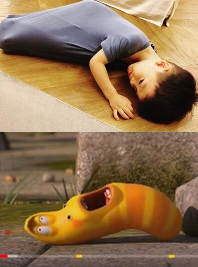 范玮琪发了一张照片,并且于动态标注,翔翔说自己是蓝色《Larva》,最后还留下了7个笑哭的表情符号。照片中可见她儿子穿着蓝色衣服,但是把衣服撑得很大,套住自己双脚,变成了一只毛毛虫,撞脸韩国知名卡通人物,虽然面无表情躺在地上,但看起来有点厌世脸,模样非常可爱。