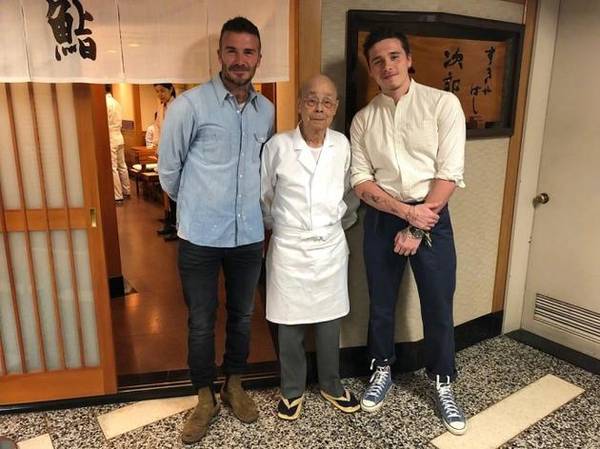 照片中,父子俩与有着“寿司之神”之称的小野二郎合影,大布一身潮装酷帅,颜值不输老爸。小贝和大布同游东京,还一起逛了潮牌店,戴墨镜露帅气微笑,遭众多粉丝围观。