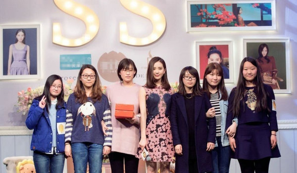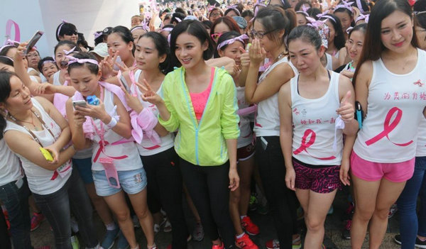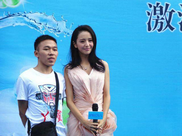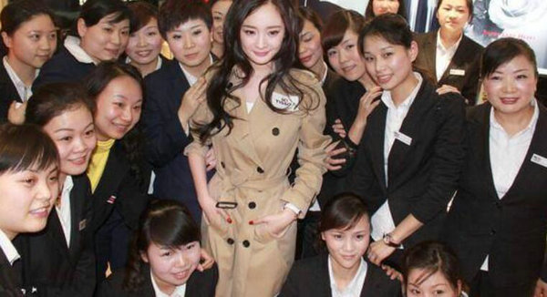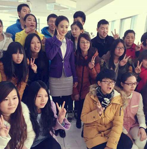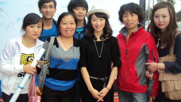 袁姗姗参加公益活动,和一群志愿者们的合影,袁姗姗真的很漂亮。