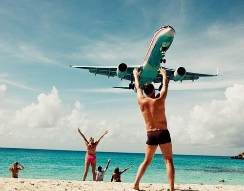 图为一架飞过海边飞机,男子灵机一动,拍下了这组搞怪的照片。