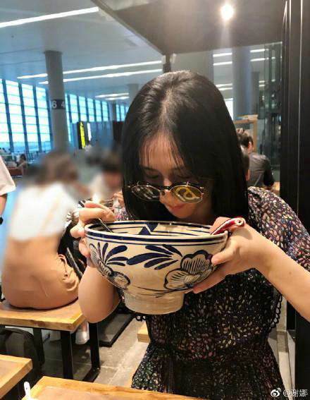 昨日上午十点,谢娜在微博发文"赶飞机,实在太饿管他的坐下就吃",并晒出了几张在机场吃面的照片。照片中谢娜坐在机场的餐厅里吃面,可以看到谢娜直接捧起比脸还大的碗喝面汤,谢娜大快朵颐的样子毫不顾忌形象,完全没有偶像包袱。
