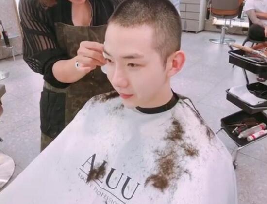 赵权晒剃短发的照片