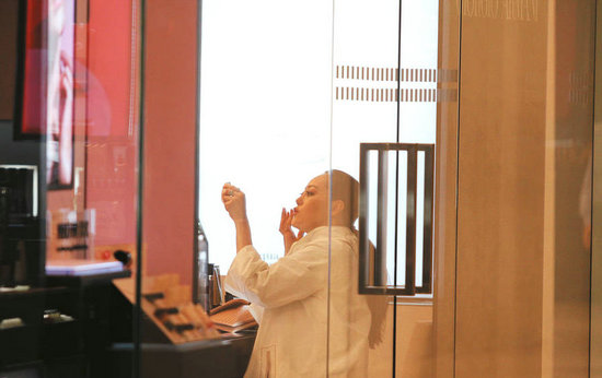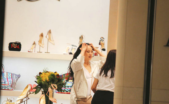 2018年9月4日,香港,钟镇涛前妻章小蕙近照曝光。今年五十五岁的她被拍到现身购物,身材似走样,披头散发试化妆品狂补妆。