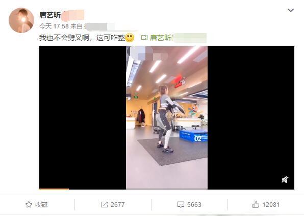 近日,有网友晒出唐艺昕和粉丝的合影,她穿着白色绒毛外套,双手放在腹部,网友称其小腹微隆,猜测她是怀孕了。25日下午,唐艺昕晒出健身的视频,视频中,她穿着紧身运动衣疯狂下蹲,还写道“我也不会劈叉啊,这可咋整”,疑似辟谣怀孕传闻。