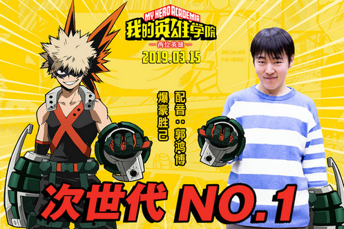 《我的英雄学院:两位英雄》爆豪胜己《我的英雄学院》首部剧场版正式定档,中国内地3月15日公映。今日中文版幕后配音阵容首次曝光。音熊联萌夏磊、沈达威、谢添天、郭鸿博、万苏婉五位国内超一线首席配音演员,组建最强英雄战队,献声剧场版。
