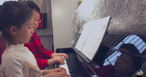 黄磊二女儿多妹学弹钢琴