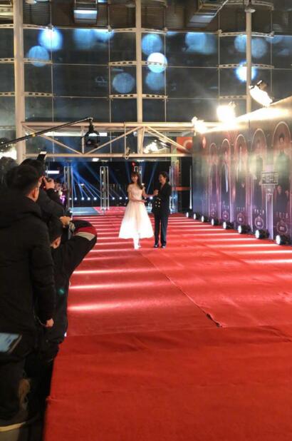 照片中,沈梦辰身穿白色公主连衣裙,和一身黑色中性打扮的倪萍走在红毯上,还亲密的手拉手,满面的笑容,和台下的观众互动,现场气氛十分的活跃。另外是沈梦辰手臂和腿被冻出红疹的照片,看着让人非常的心疼。