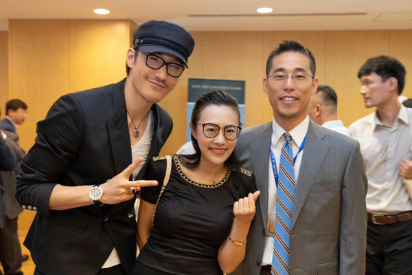 交流会上,人气爆棚的胡兵秒变合影墙,随时随地被嘉宾们花式求合影,成为在场人员的最佳“拍”档。现场细心人士发现,身材高大的胡兵与女士合影时总会悄悄地弯下身躯,虽然只是小小的举动,却将绅士的谦和与亲切展示得淋漓尽致。胡兵表示,在深耕演艺事业、发挥中日之间桥梁作用的同时,今后他还将继续在国际舞台上担当交流使者,毕竟“文化先行很重要,任何时候这都是彼此了解的最好方式,希望今后能多一些中日合拍的影视剧作品,可以立体展现‘移动支付’‘共享经济’‘高铁技术’等全新的中国形象。”
