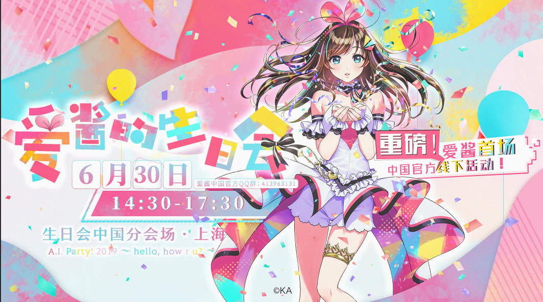 2019年6月30日,虚拟偶像绊爱A.I. Party! 2019〜hello, how r u?〜的首场中国特别线下生日会在上海举办。作为生日会的海外分会场,现场除了转播日本Kizuna AI生日会的实况外,更是公布了一个重磅消息:中国版爱酱的诞生。这是绊爱在中国的又一次全新尝试,也为大家昭示着日本虚拟偶像IP以新形态进军的新可能。