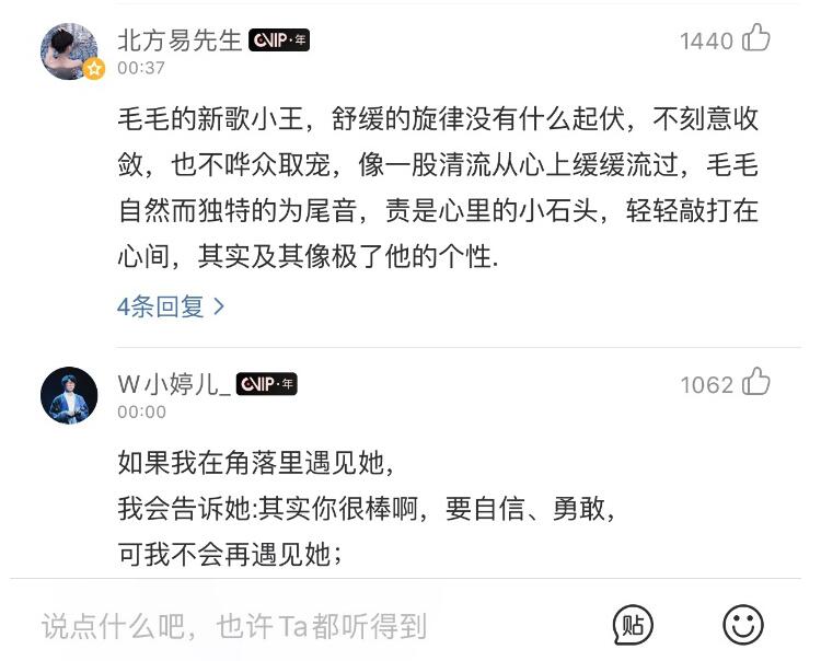 岁末年初,毛不易轻轻吟唱一如耳边呢喃,打动了不少正在回乡路上的旅人。网易云音乐用户“感受生活的旅行家”写下这样一段评论,“歌里的那些天空的乌云、生活里的沉重,独自在角落里的绝望,眷恋的温存,都是不敢再提起的曾经。这不只是你,是每一个挣扎在繁华都市孤独的奋斗者,是每一个平凡的我们”。可以说在这里,你听到的不仅是毛不易的温度,也是你心中的深度。