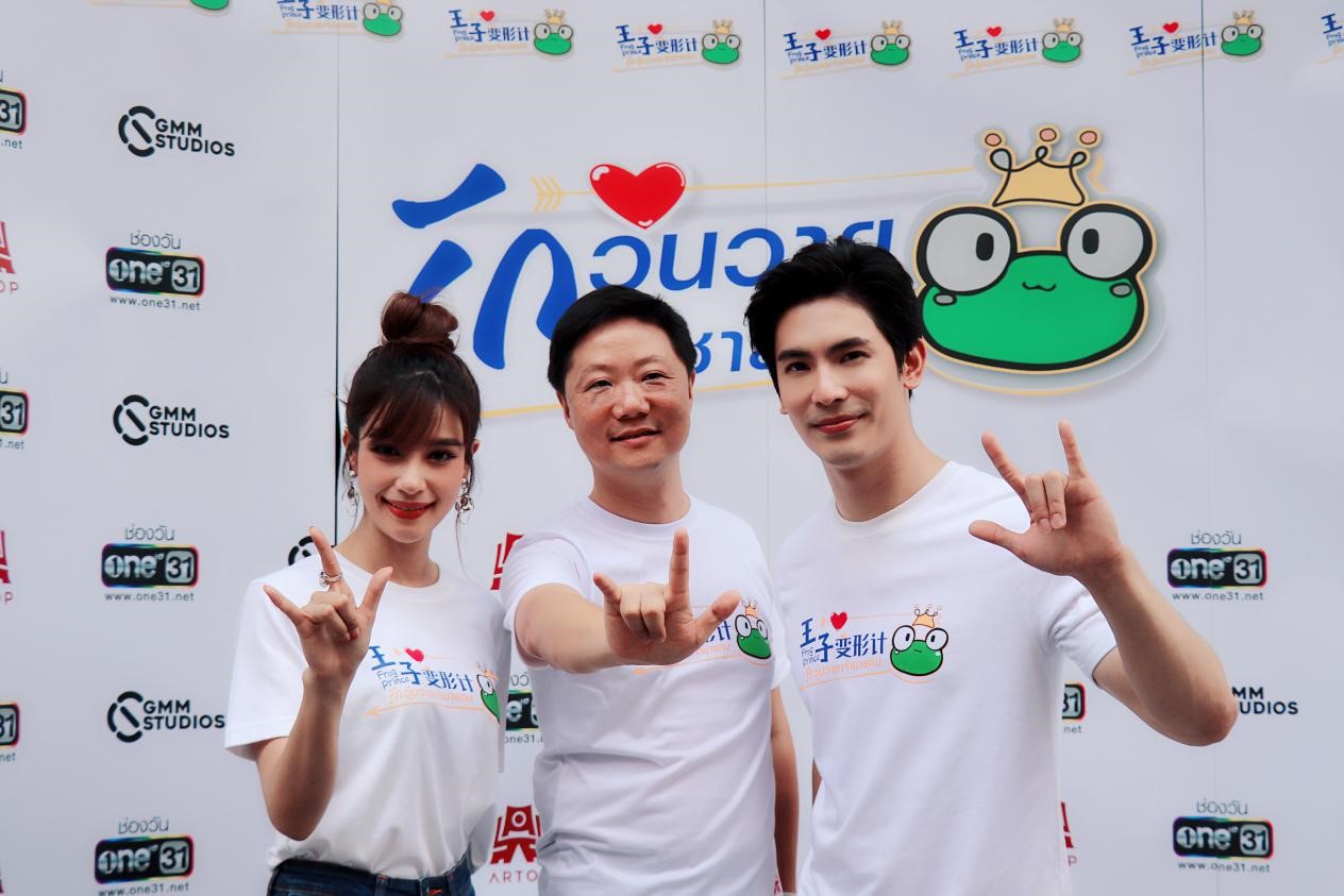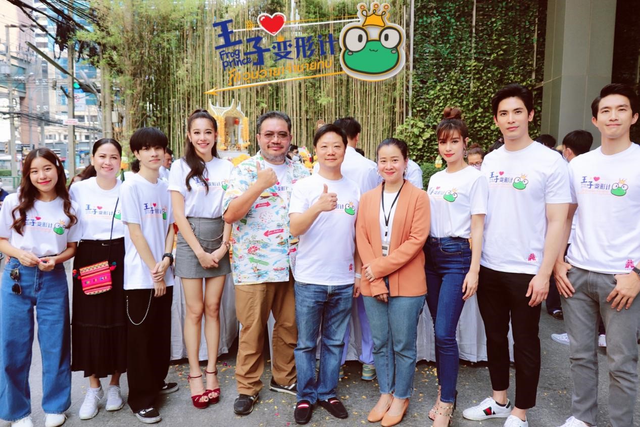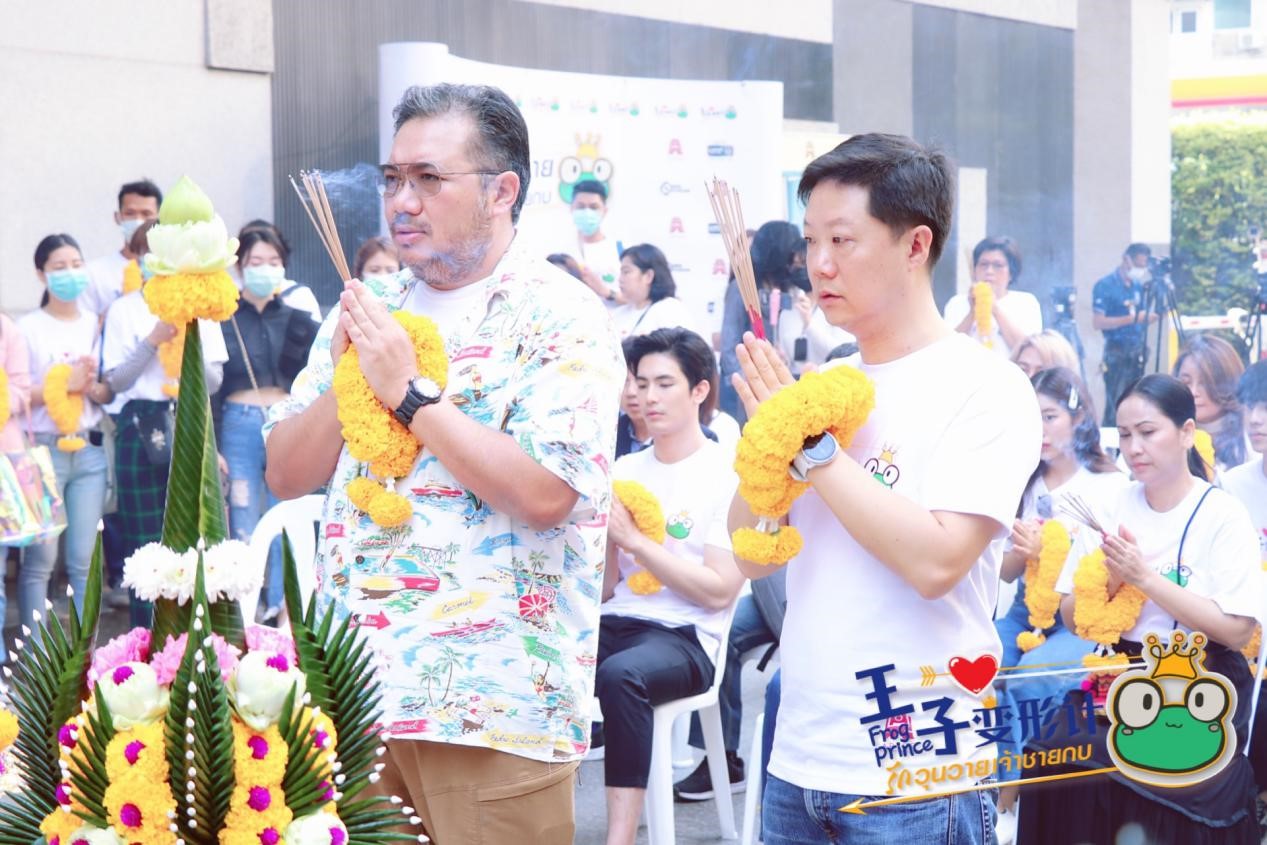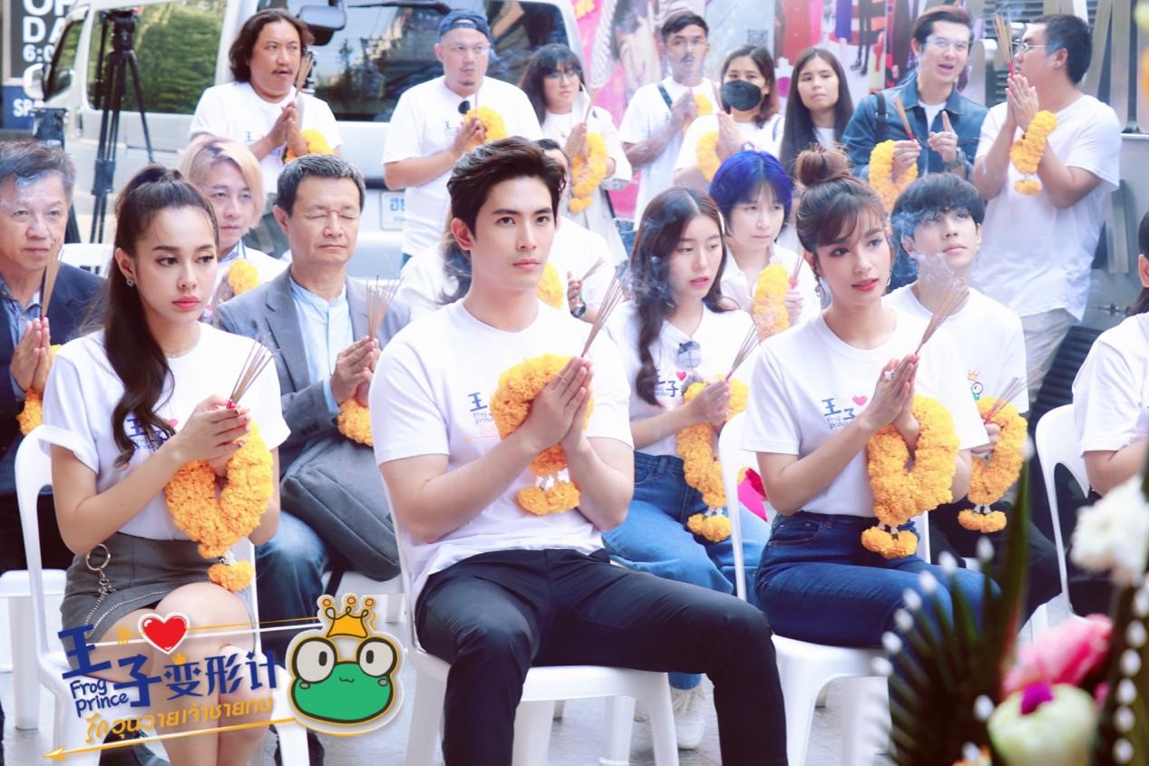 2月28日上午9时9分,《王子变形计》剧组在Grammy大楼前举行盛大的媒体发布会,一众主创悉数出席。现场邀请了众多泰国主流媒体及相关合作伙伴到场观礼,该剧出品人艺鼎传媒CEO张栋先生和导演Pla先生,携主演颂恩·宋帕山、婉娜拉·宋提查等10位演员一同祈福。