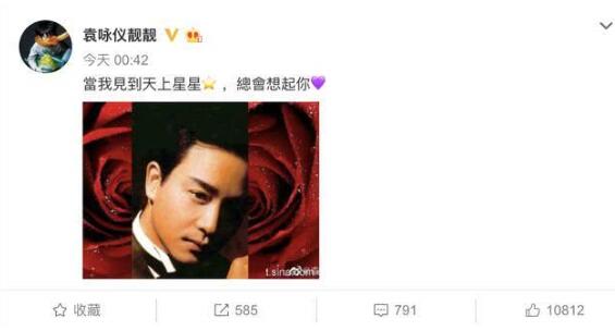 4月1日凌晨,艺人袁咏仪更新动态,发文缅怀世人张国荣,配文道:当我见到天上星星,总会想起你。不论是张国荣还是梅艳芳,袁咏仪每年的忌日和冥寿都会为其发文庆生。