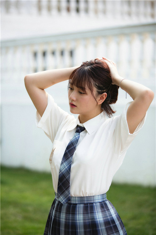 近日,“饭系女孩”董思怡曝光了一组夏日写真。片中,她身穿白色半袖衬衣及蓝色格裙,搭配同款花纹领带,一袭学院风的装扮无不洋溢着青春与活力。轻薄透亮的妆容,手腕处借助一条简单的银色手链加以点缀,日系的甜美中又带着些许邻家女孩的气息。当微风吹动略带汗水的发丝,董思怡用她那双湿漉漉的双眼凝视镜头,干净而又纯粹。