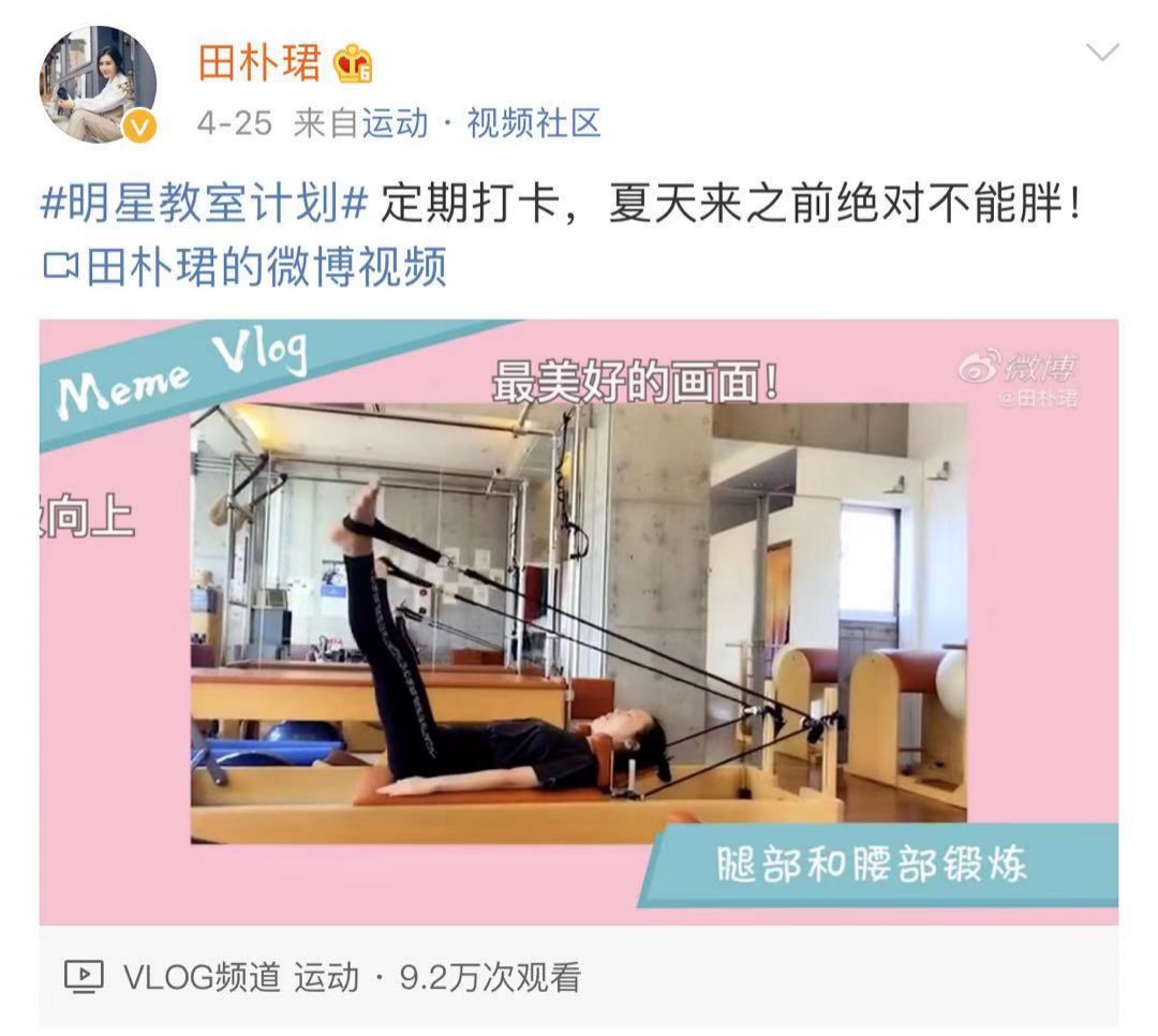 很多人只有在想要减肥的时候才迈进健身房,平时就把健身当做一种负担。但田朴珺在参加活动之外,平时也有注意健身运动,完完全全把健身当做一种爱好。