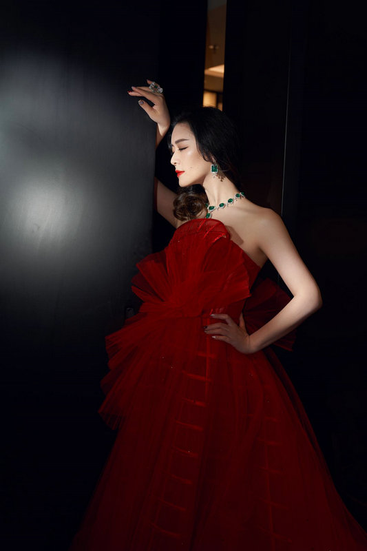 田海蓉以一袭中国红造型惊艳全场,再加上LARWINER拉威兒祖母绿宝石的奢华配饰,举手投足间将“时尚高定女王”的无敌气场展现得淋漓尽致,俨然把红毯走成了国际时尚舞台,随拍都是大片!