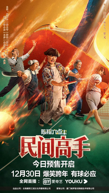 电影由云南爆笑江湖文化传播有限公司出品,厦门淘梦银河网络技术有限公司营销。民间高手乒乓球大赛,12月26日10点预售开启限时八折,12月30日邀你来战!