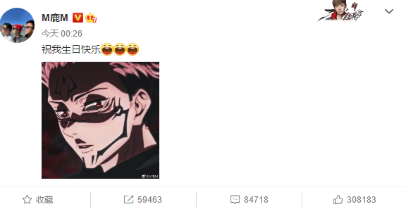 4月20日是鹿晗生日,鹿晗凌晨发文为自己庆生:“祝我生日快乐!”并配上三个大笑的表情包。