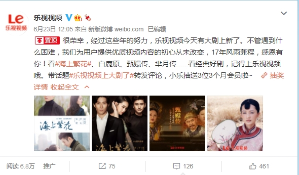 还有大量95后、00后用户因为对李沁、于朦胧、李现、易烊千玺等明星艺人的喜爱而成为乐视视频的新会员。而且在《海上繁花》官宣定档时,不少用户在乐视视频官方微博下留言,祝愿平台能够越来越好,有用户就有未来,乐视视频的前景仍值得期待。