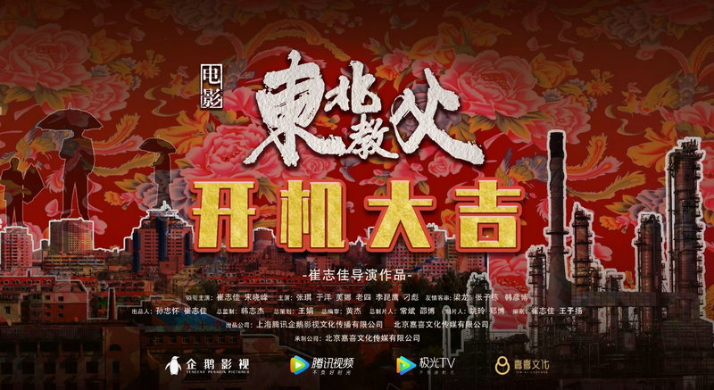 在同日公布的开机海报中,用丰富多元的视觉元素营造出扑面而来的纯正“东北味儿”。背景中色彩鲜艳的牡丹被面充满乡土气息;高耸入云的烟囱和炼钢高炉展现出老工业基地的历史沧桑,而密集的老式楼房又让人感受到一丝生活气息。正是在这个典型的东北世界中,范大明白等几个主要人物的剪影悄然出现在画面左侧,神秘感十足,令人不禁期待人物的造型细节。