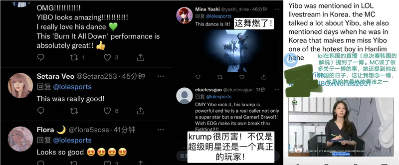 这番操作成功引起国内电竞爱好者和粉丝们的热情,纷纷在社交平台“把元气带给EDG”,为声援EDG和LPL聚集了更大声量。在海外,王一博场间特别环节的表演也广受好评,除了许多youtube和推特粉丝自发安利外,还有众多玩家对此表达认可和羡慕。这次LPL的明星合作,真正在向全球玩家传递了LPL赛区的助威热情。