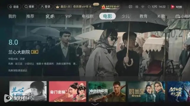 海信电视搭载的聚好看平台,汇集了海量高分剧集和口碑佳片以及综艺、音乐、教育、K歌等丰富的点播内容(节目根据电视机型有所区别)。目前,电影《兰心大剧院》正在聚好看全网首播,让我们跟随娄烨导演的手持镜头,走进孤岛时期的上海,看一场在兰心大剧院上演的“戏中戏”。