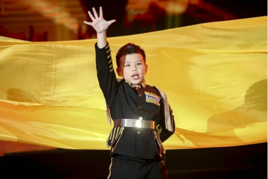 节目中钜星国际艺术少年唐代洲开唱即引爆节目亮点,走下舞台的刹那间前翻跨越黄色巨型绸带惊艳亮相,配合部分说唱,让整体的演出风格富有艺术感染力,舞台感十足的他轻松驾驭整首歌舞表演。
