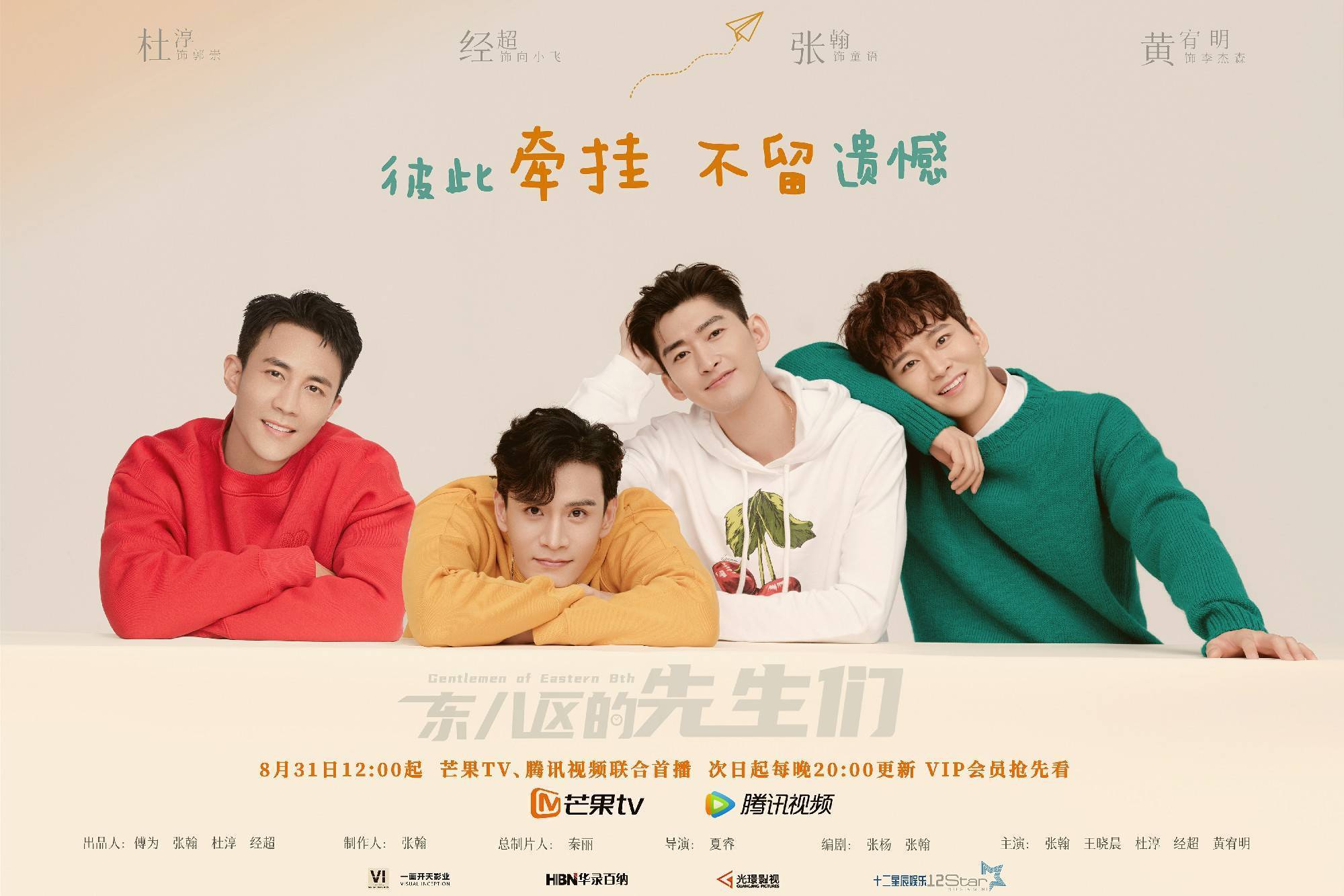 由张翰担任制作人,秦丽担任总制片人,夏睿执导,张翰、王晓晨、杜淳、经超、黄宥明领衔主演,雅玫、肖涵、李浩菲主演的都市生活轻喜剧《东八区的先生们》发布首支预告官宣定档,将于8月31日12:00起在芒果TV、腾讯视频联合首播,次日起每晚20:00更新,VIP会员抢先看;9月1日20:00起登陆湖北卫视黄金档。