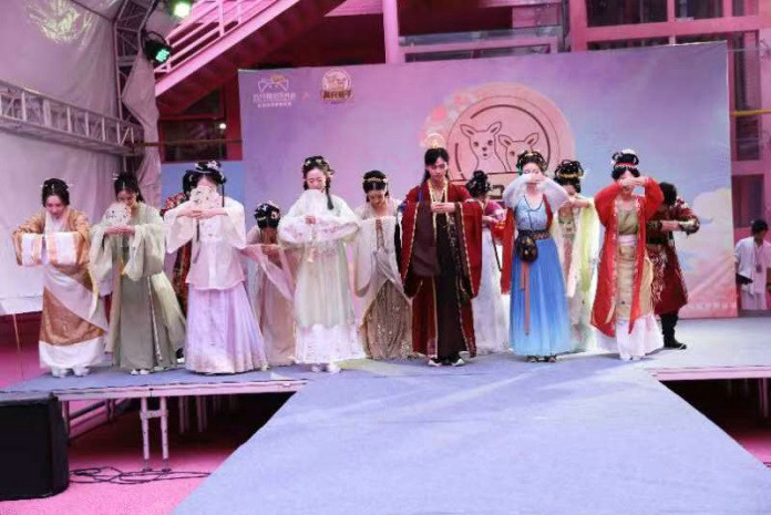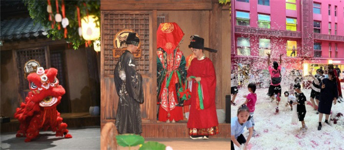 “狍袍秀场国风大典”活动通过一场新东方汉服主题文化活动,开启两只狍子的东方美学国风盛典。活动内容重点以四大环节为主:宋制汉婚表演秀、汉服模特妆造大赛、古风场景沉浸式体验、历代汉服形制大秀及汉服歌舞秀等,其中沉浸式场馆全场地占地7000m²,105个场景,12000件多种风格古风服装,不仅为热爱传统文化服饰的人们提供了精致的自拍环境,还搭载了书院、棋亭、酒肆、赌坊、茶馆、当铺NPC互动环节,内容涵盖评书相声表演、舞狮表演、川剧变脸秀表演、喷火秀表演、相亲游戏等多种传统艺术形式,只为呈现整场活动文化氛围,增加参与性和趣味性,体验感十足。除此之外,该盛典主场环节当属国风模特妆造大赛,众多热衷古风汉服的群体在舞台尽情展示,让人直呼大饱眼福。