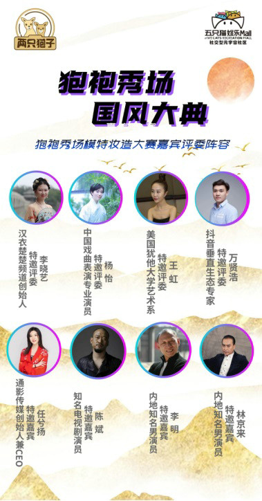除了活动环节丰富多彩,嘉宾评委阵容也十分豪华。国风模特妆造大赛特邀评委由李晓艺、杨怡、王虹、万贤浩担任,并且还邀请到了通影传媒创始人兼CEO任兮扬、知名电视剧演员陈斌、内地知名男演员李明、内地知名男演员林京来等担任特邀嘉宾,如此八位不同圈层的专业眼光瞬间提升本次大赛的含金量。